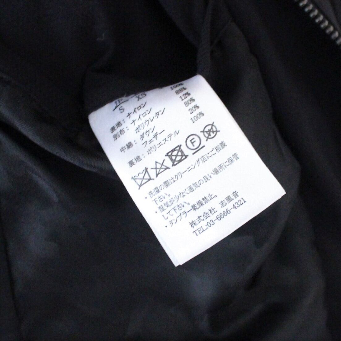 素材ーナイロン100% 別布 ナイロン88%、ポリウレタン12% 中綿 ダウン80%、フェザー20% 裏地 ポリエステル100%