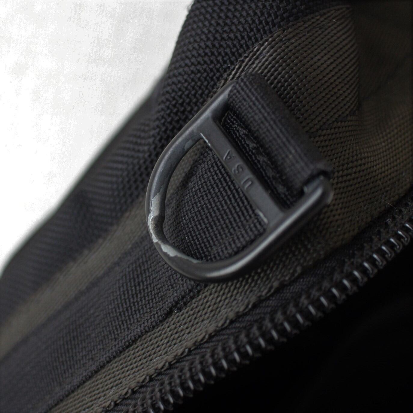 部分的な色褪せ、内側コーティング剥がれ、ショルダーストラップ用Dカンの変形、金属パーツの一部錆、塗装剥がれ、ショルダーストラップのパッド裏に一箇所亀裂、表面生地の細かい擦れ、テカリ等々。