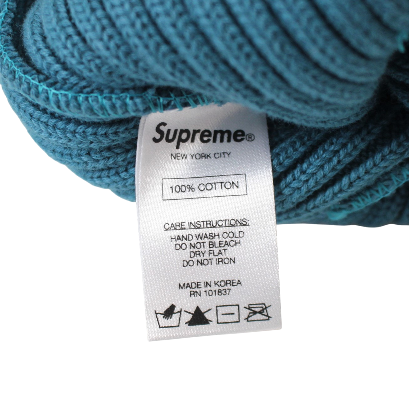 半タグ付き supreme ボンボン ニット帽 ribbed beanie 韓国製 ティール (w-0521219)