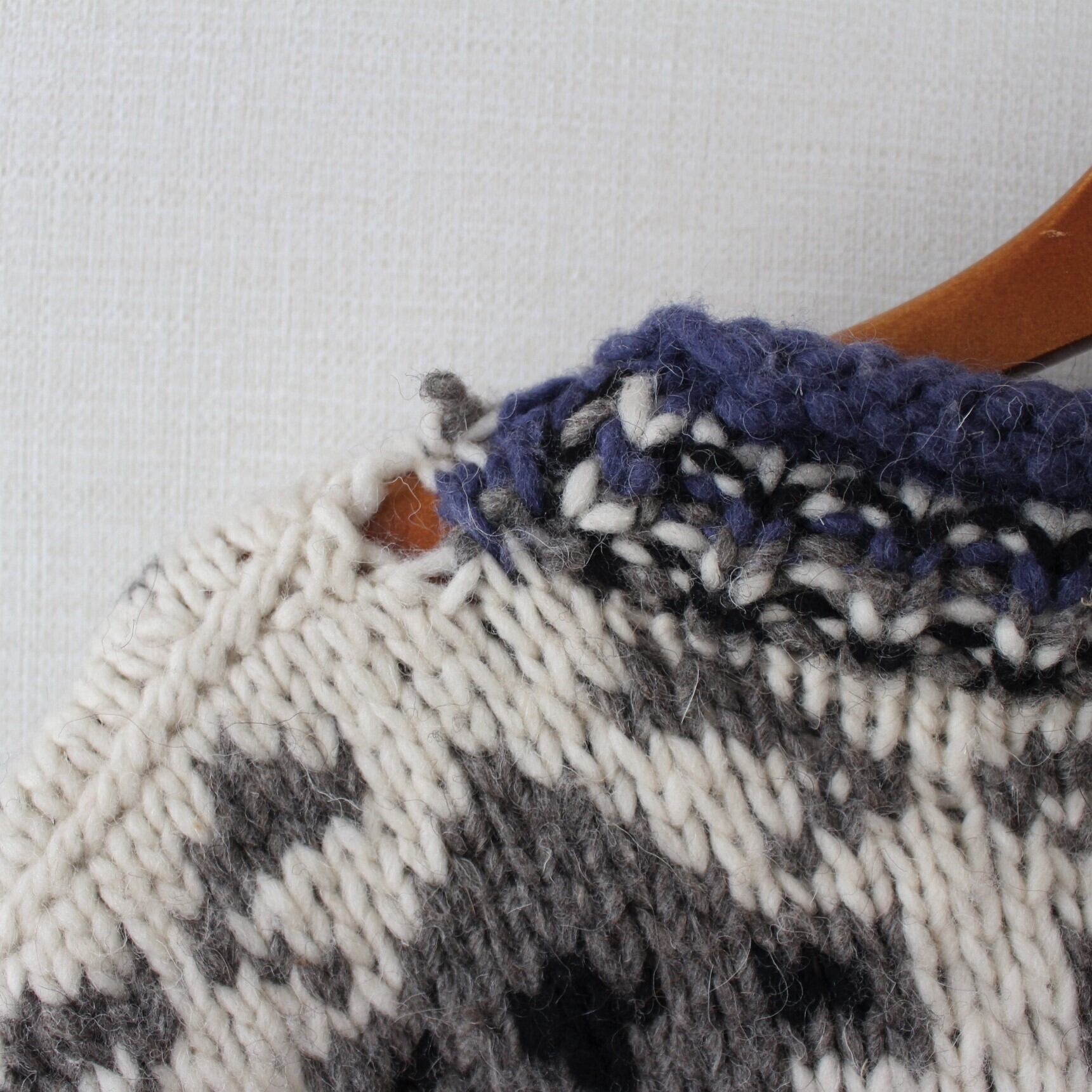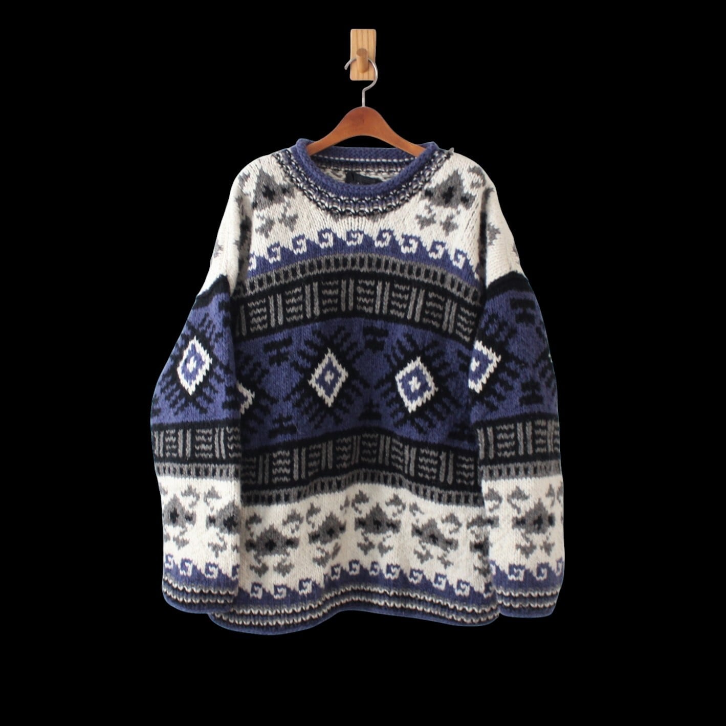 OTAVALO オタバロ ロールネック ニット エクアドル製 白、ネイビー、黒、グレーのネイティブ柄 M (w-2521219)
