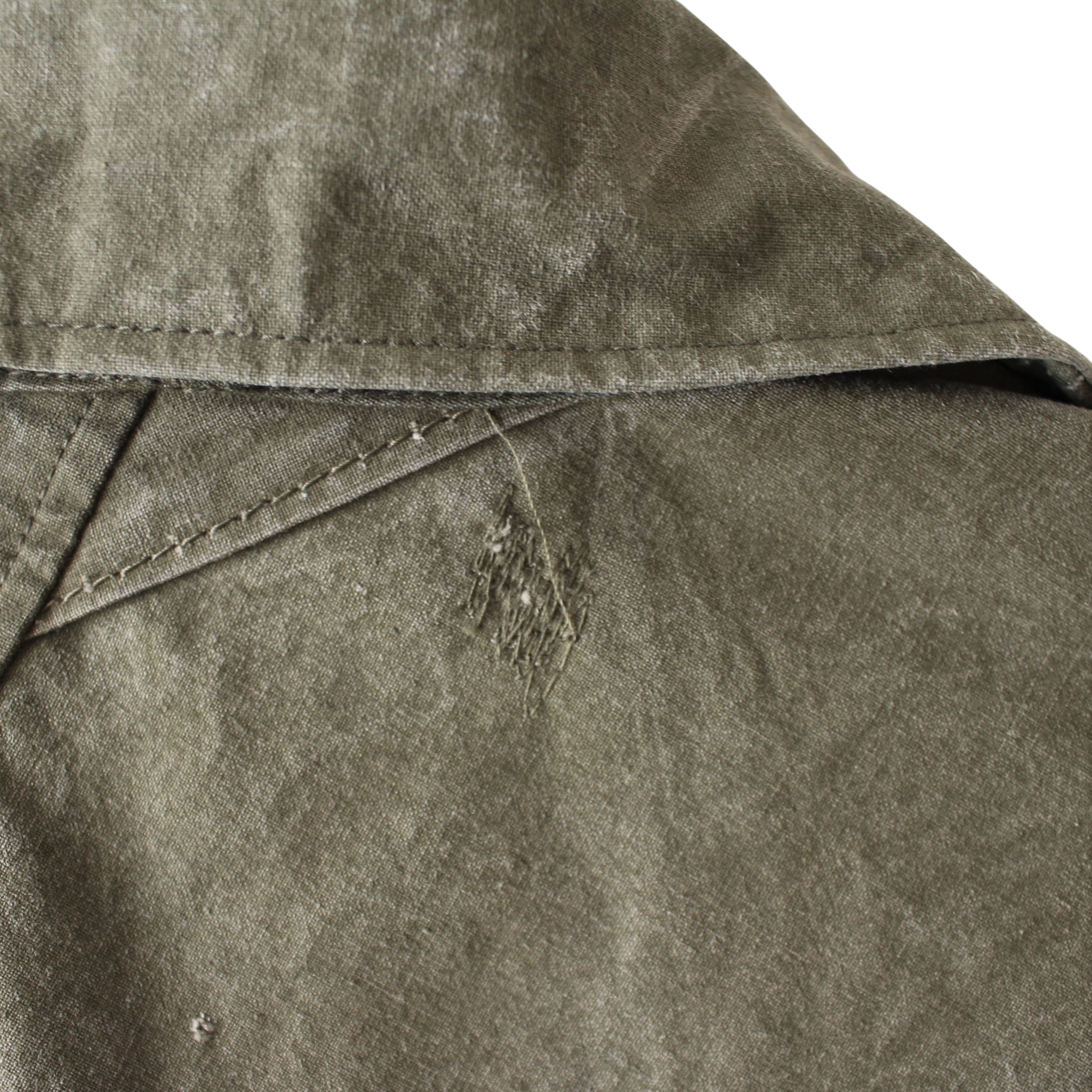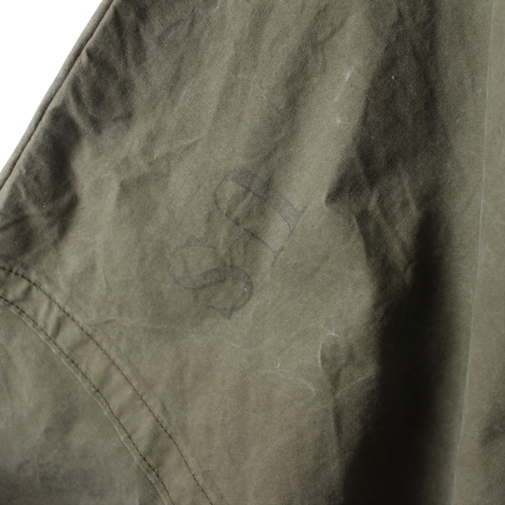ヴィンテージミリタリー品(おそらくダッフルバッグ)をリメイクしてジャケットにしたアイテム。