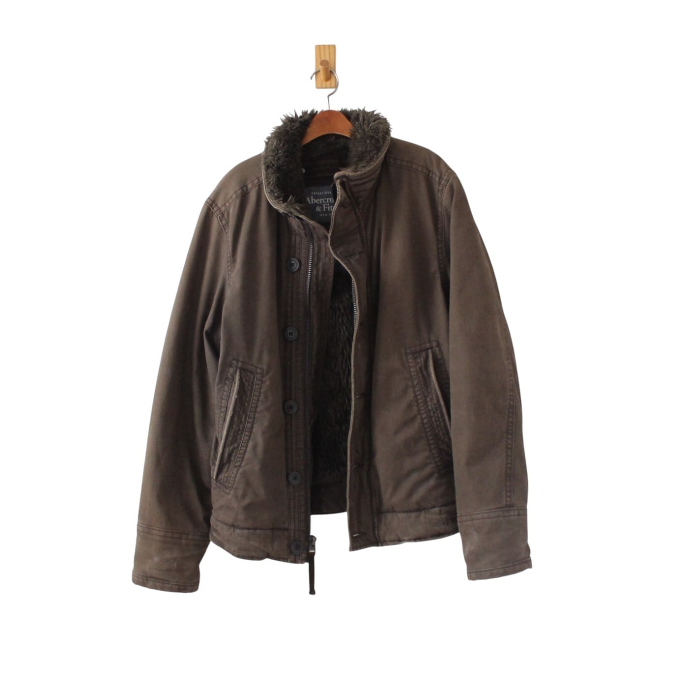 ABERCROMBIE & FITCH アバクロ 裏ボア ジャケット ADIRONDACK JACKET ブラウン系のカーキ S (w-2620117)
