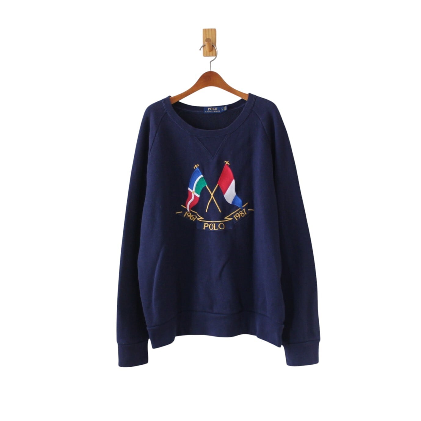 ポロ ラルフローレン スウェット 復刻品 クロスフラッグ刺繍 ネイビー L 180/100A (w-3620125)