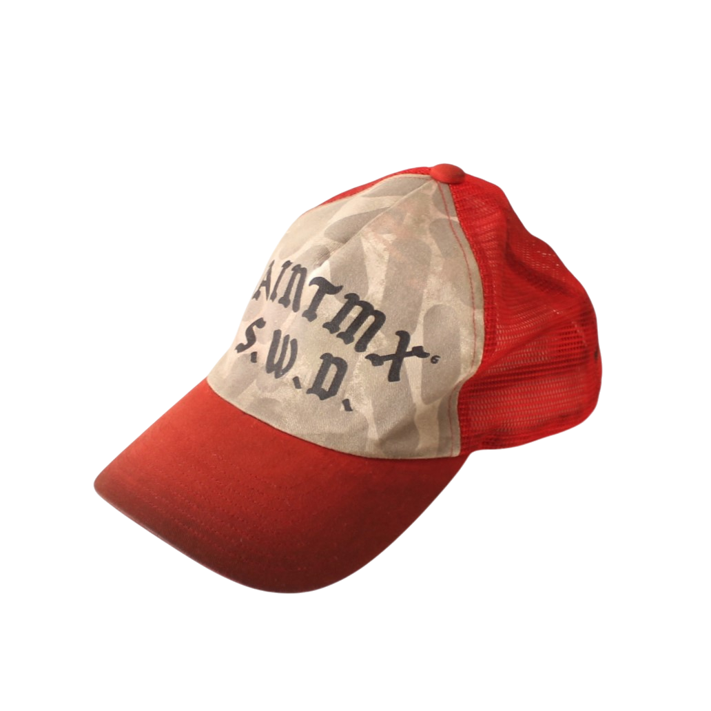 sold SAINT Mxxxxxx セントマイケル メッシュキャップ 日本製 ユーズド加工 赤 (w-2620102)