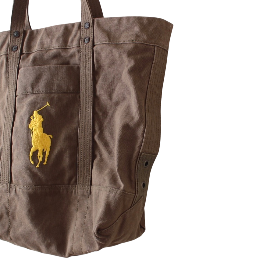 sold ポロ ラルフローレン キャンバス地 トートバッグ ビッグポニー刺繍 グリーン系のカーキ (w-5620201)
