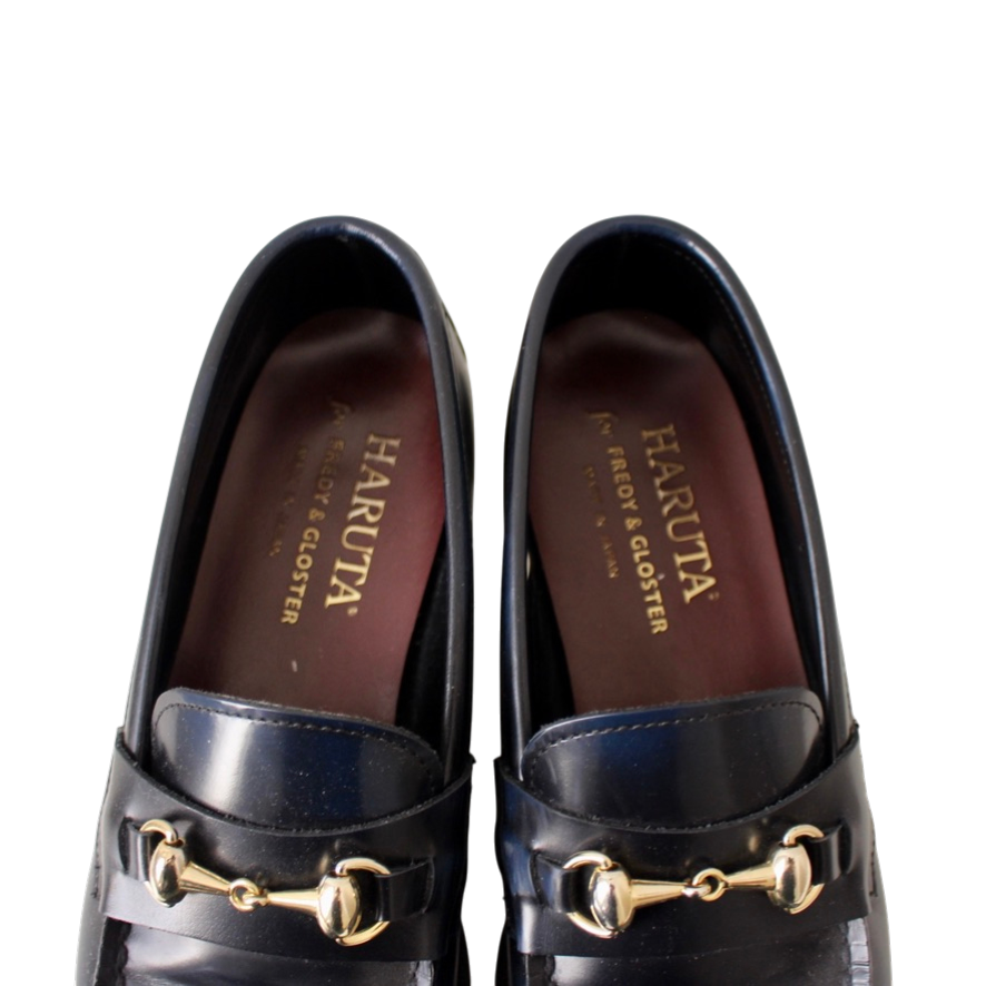 HARUTA ハルタ × F&G フレディアンドグロスター ビットローファー 日本製 ガラスレザー ネイビー 23 1/2 EE (w-3620206)