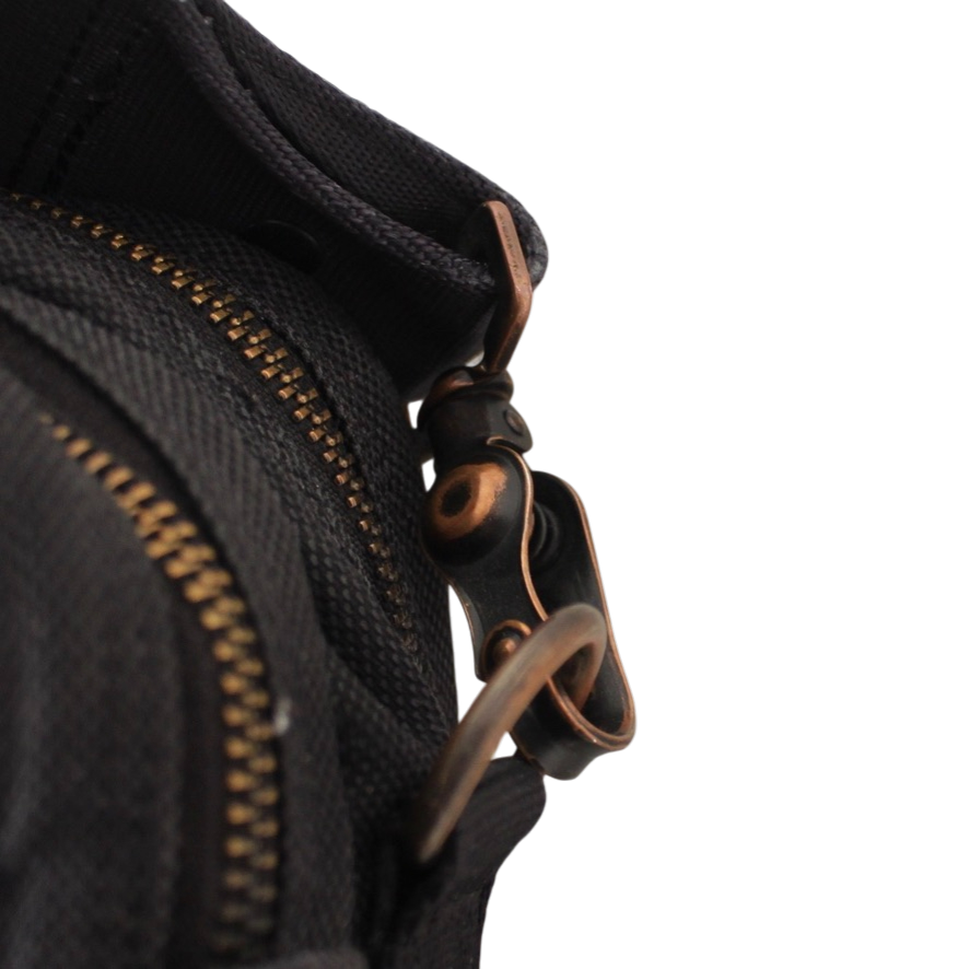 サイドのファスナーの開け閉めでマチの調整が可能です。