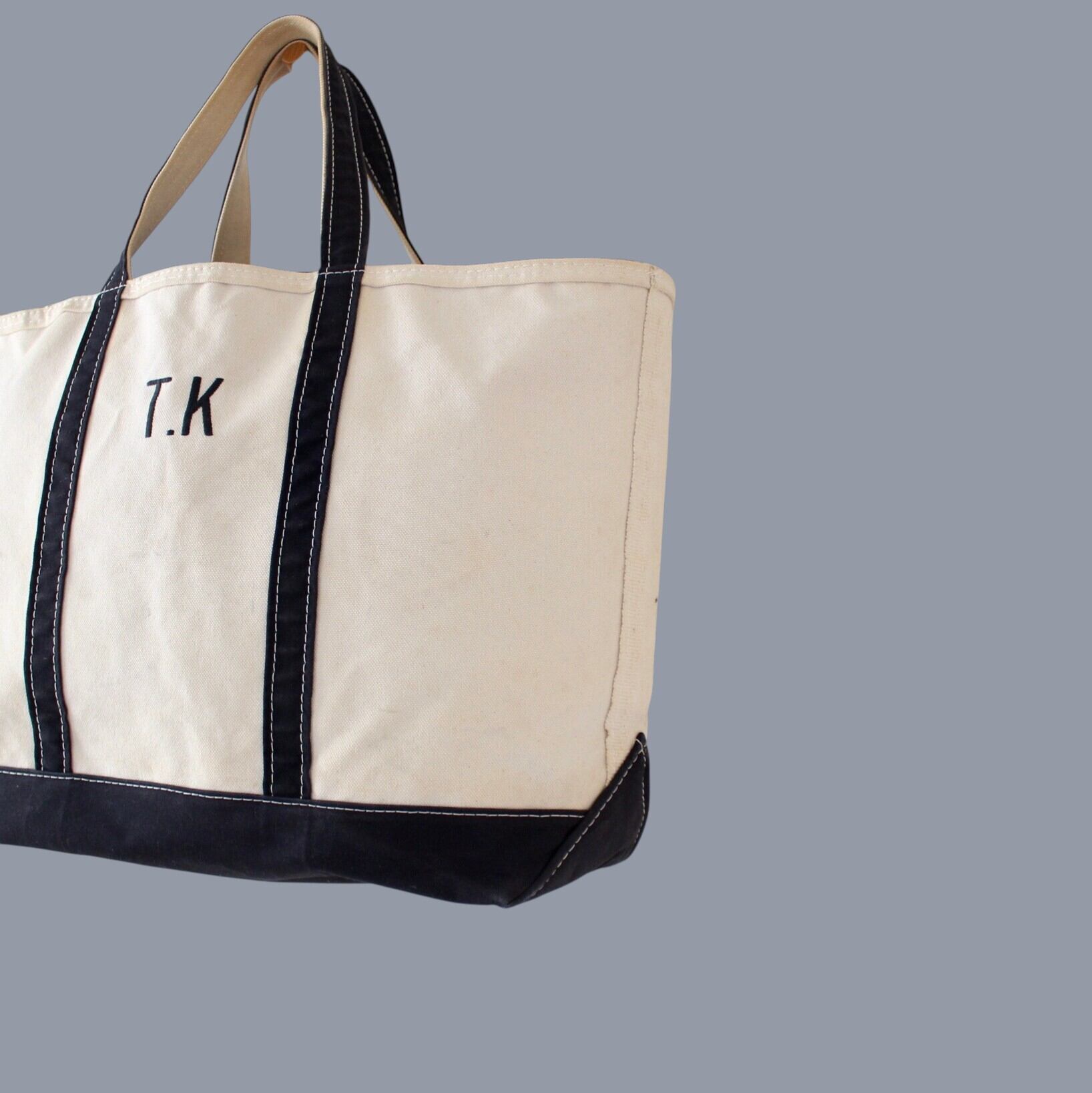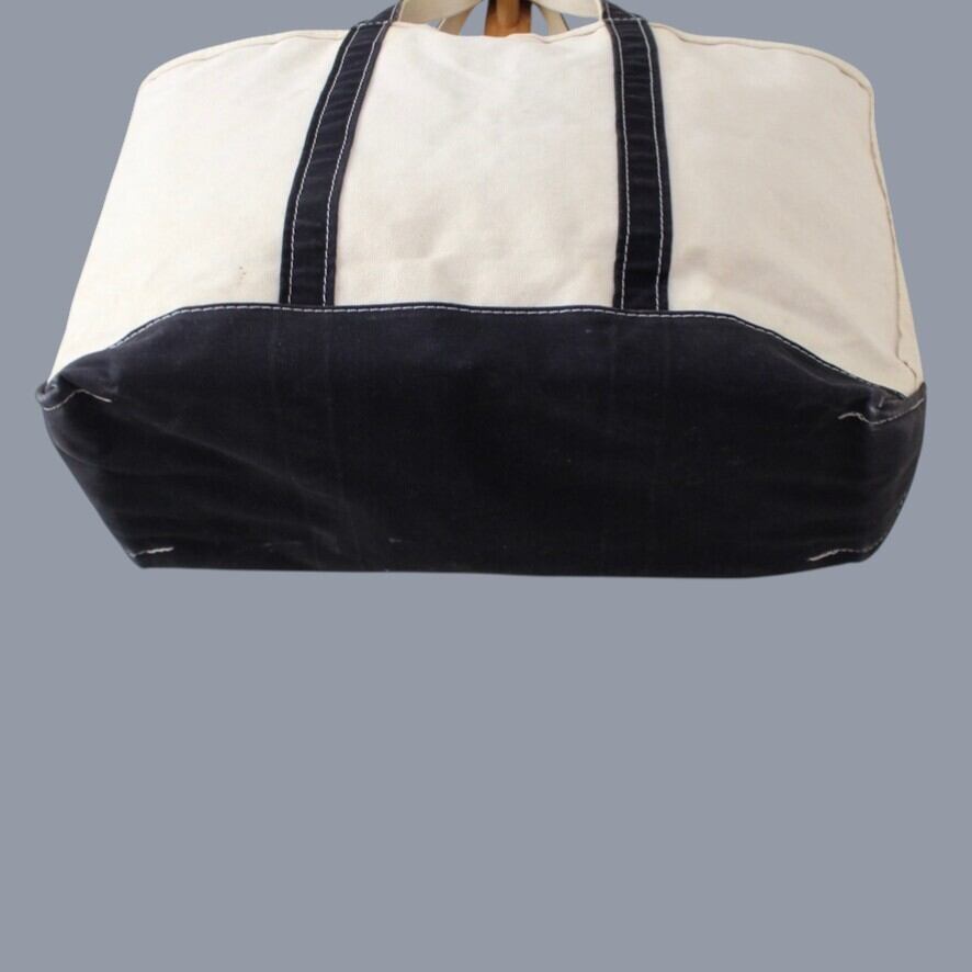 L.L.Bean エルエルビーン 90s トートバッグ BOAT AND TOTE ジップトップ USA製 別タグ 白×濃紺 おそらくラージサイズ (w-5620217)