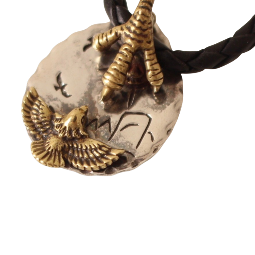 ブランド不明 シルバー925 レザーチョーカー 間の抜けた表情のイーグル (w-1620221)