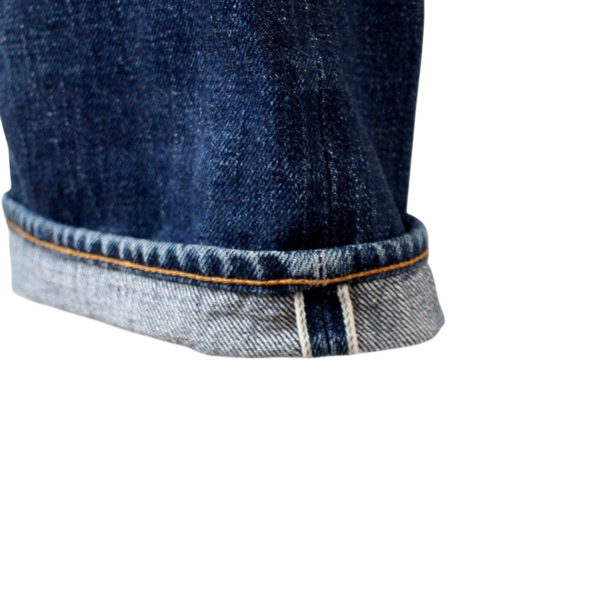 耳付きデニム。フロントジップのフラップ裏なんかにもあります。