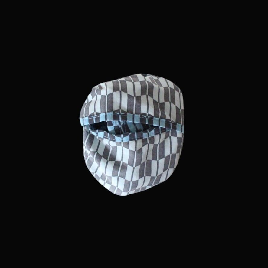 色は水色×黒の総柄。