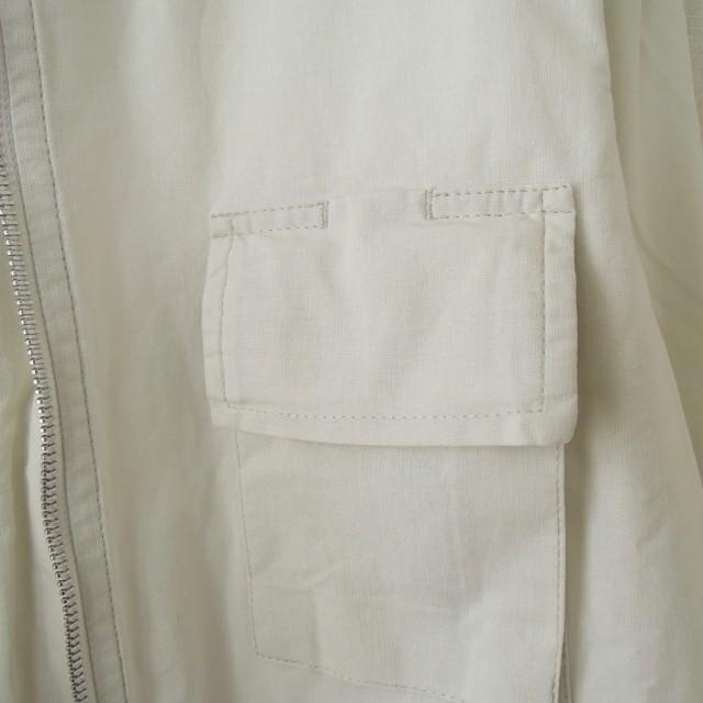 フロントジップのフラップ部分に一箇所かなり薄めの小さな汚れがあります。また、おそらく漂白剤を使ってクリーニングしたと思われる臭いが少しあります。その他、品質表示タグの印字が薄れています。全体的には致命的な問題箇所はなく、まだまだお使いいただけますが、中古品という事をご了承の上、ご購入お願いします。