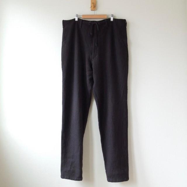 大きめのシルエットを腰紐でギュッと締めて履く、ヨウジらしいアイテムです。ラフにロールアップしてもおしゃれです。