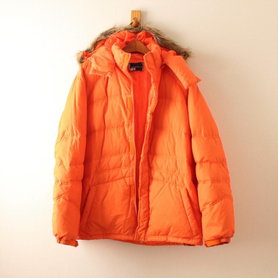 OAKLEY オークリー 00s フード付き ダウンジャケット ガーメントダイ+ウォッシュ加工 オレンジ M (w-1221112)