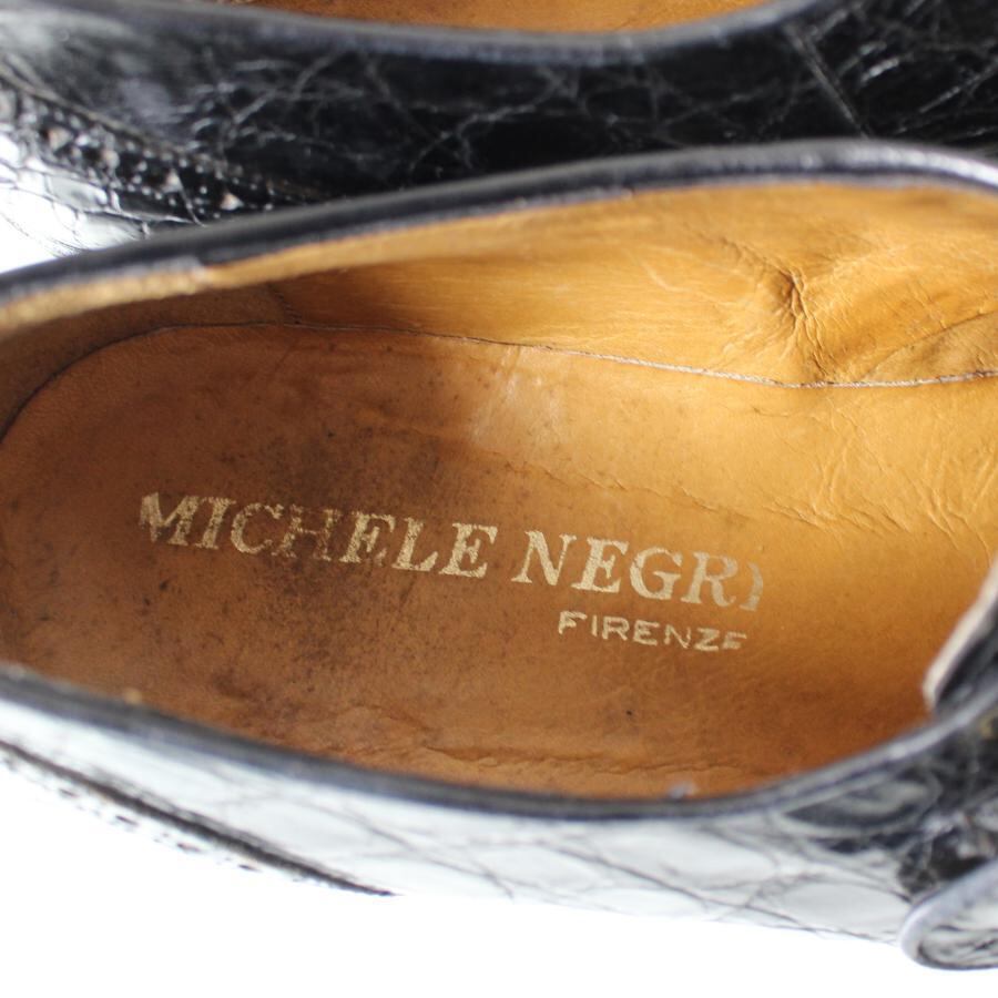 MICHELE NEGRI ミケーレネグリ モンクストラップシューズ クロコダイル 黒 25cmくらい (w-1756)