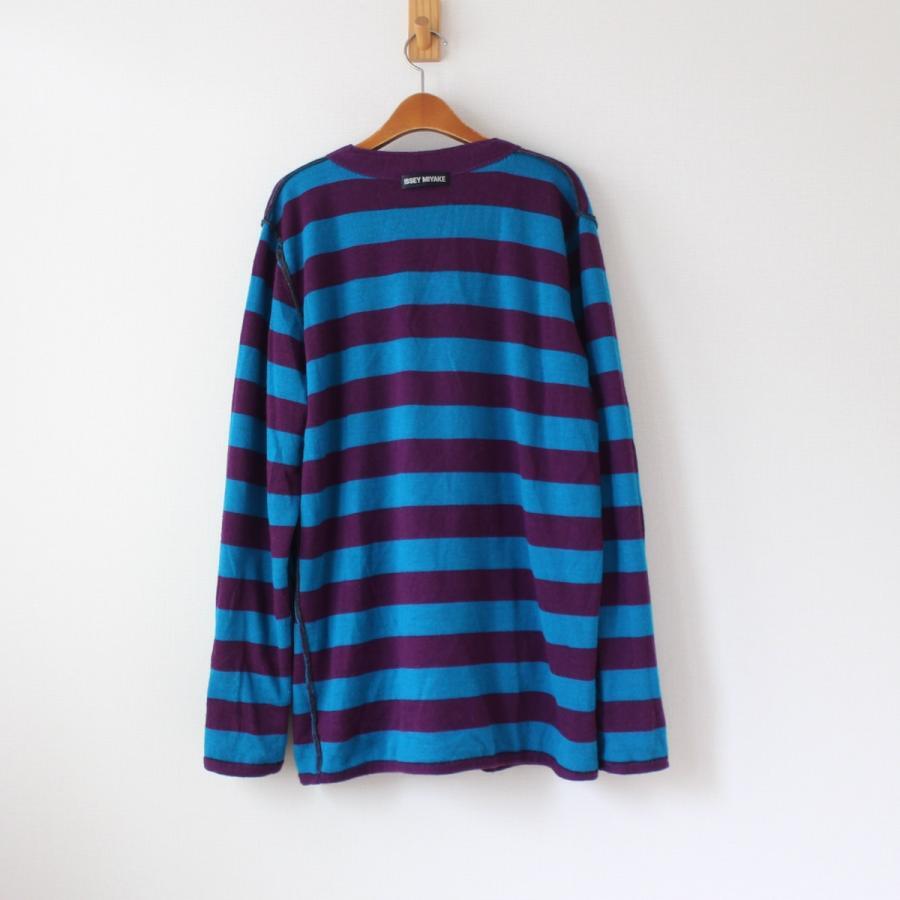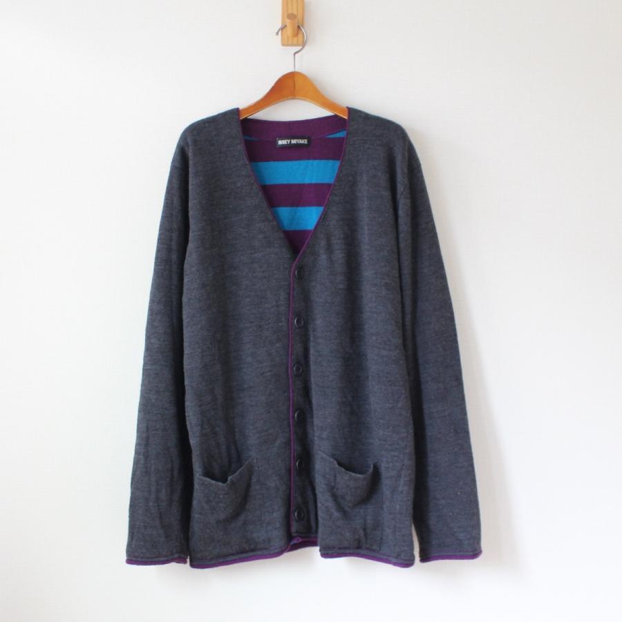 訳あり! イッセイミヤケ リバーシブル カーディガン チャコールグレー 裏はパープル×ブルーのボーダー柄 (w-0567)