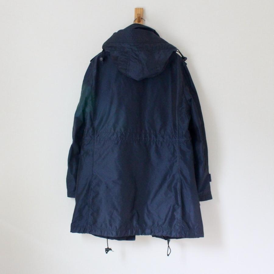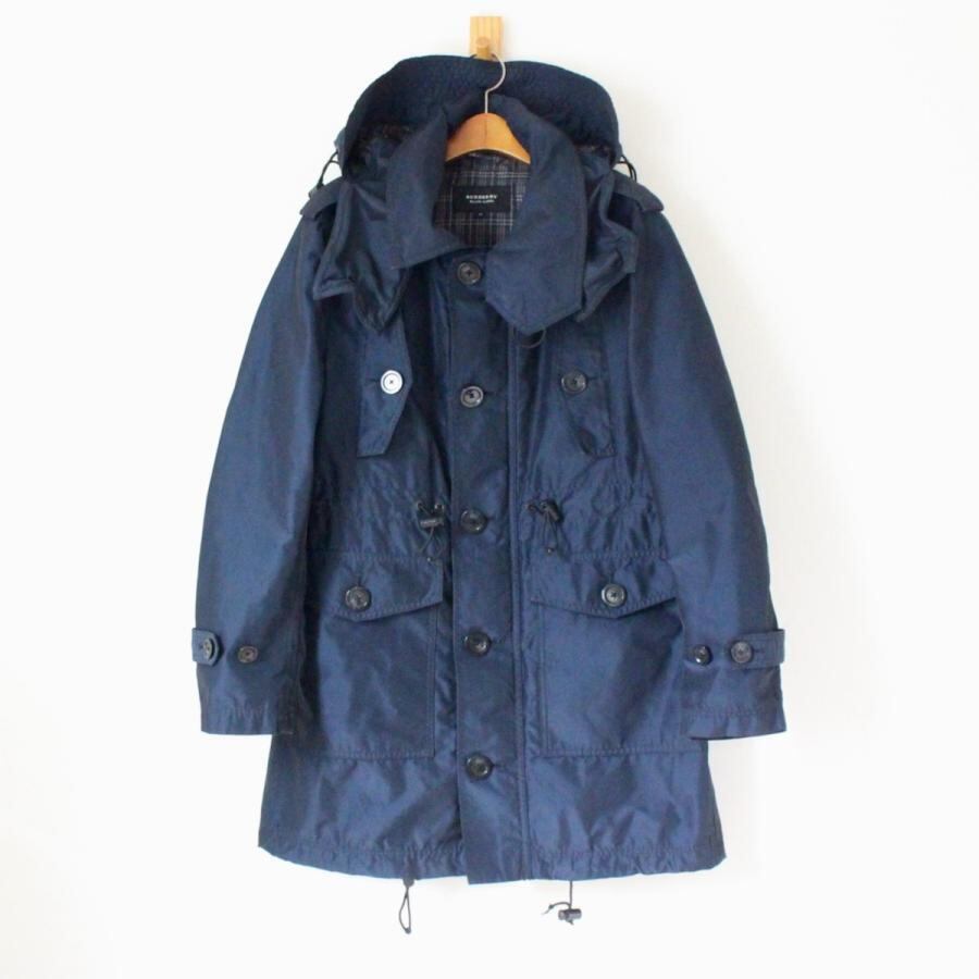 訳あり! バーバリー ブラックレーベル ナイロンコート フードの一部にワイヤー入り 玉虫色のネイビー M (w-1522)