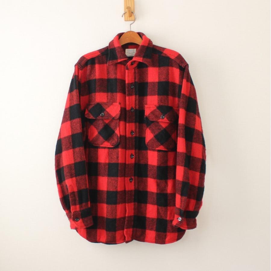 SEARS シアーズ ヴィンテージ ウールシャツ 裾マチあり 赤×黒のブロックチェック柄 M位 (w-3321123)