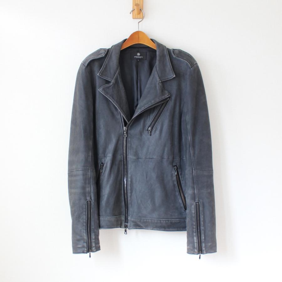 BEAUTY&YOUTH ユナイテッドアローズ ダブルライダースジャケット ユーズド加工 黒 L (w-1958)