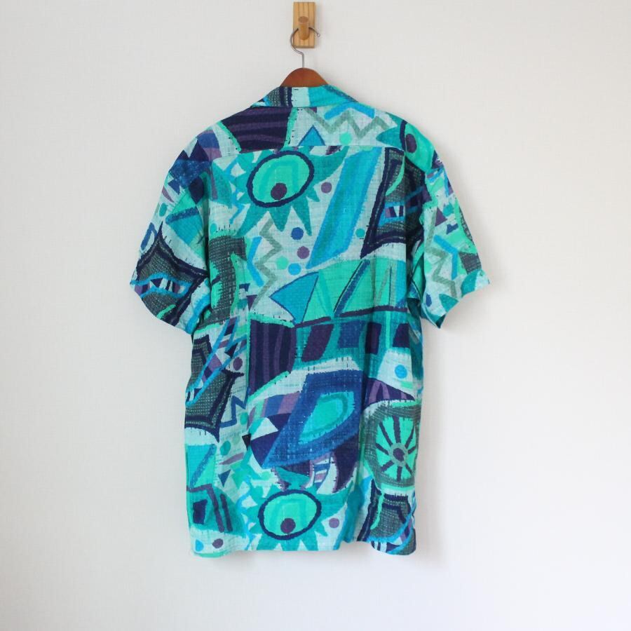 JUN MEN IMPORT ジュンメン 80s-90s 半袖 レーヨンシャツ イタリア製 グリーン、ブルー系の総柄 (w-2320604)