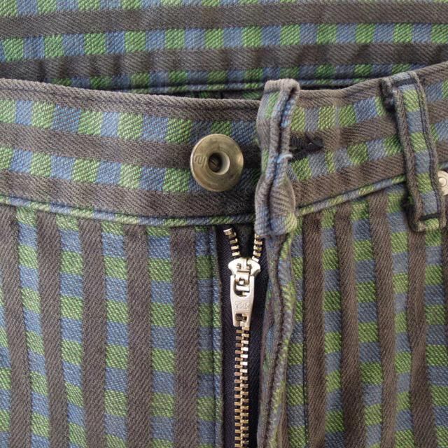 ネイバーフッド 02年 デニムパンツ NARROW ネイビー、ブルー、グリーンのチェック柄 M(w-0960)