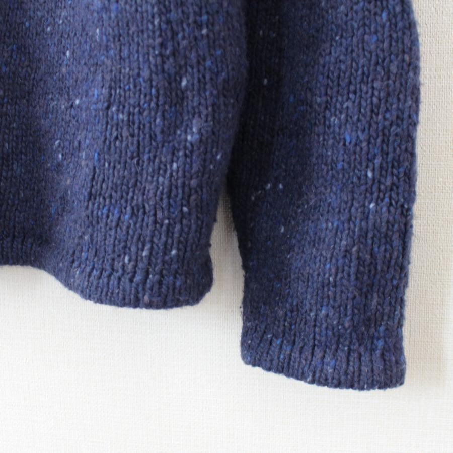 エディーバウアー アンゴラ混 ヘンリーネック ニット ネップ入り生地 ネイビーに一部グレー M (w-2420225)