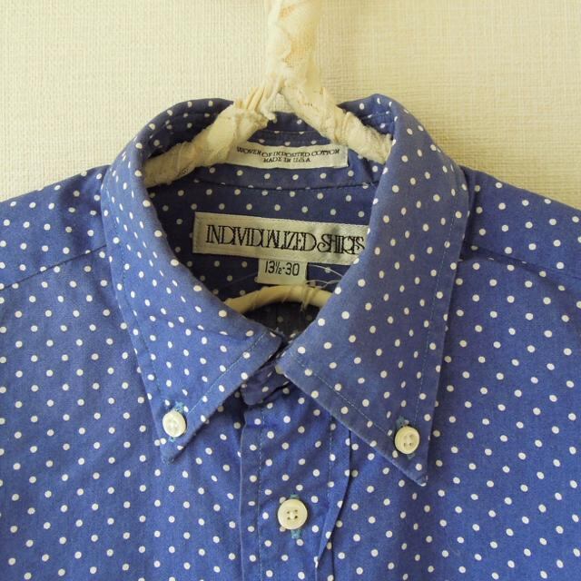 INDIVIDUALIZED SHIRTS BDシャツ USA製 ブルーに白のピンドット柄 13 1/2-30 (w-0557)