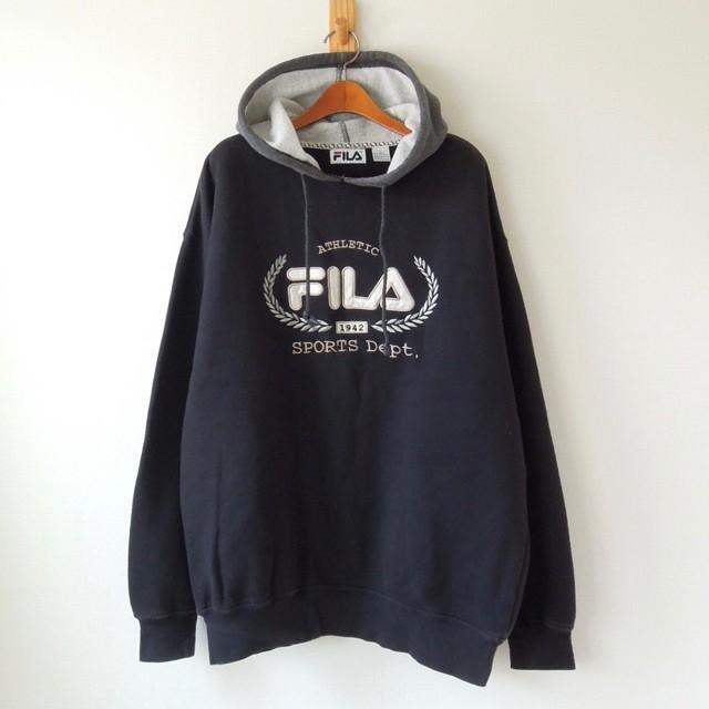 FILA フィラ 90s パーカー マレーシア製 黒×グレー L (m-211)