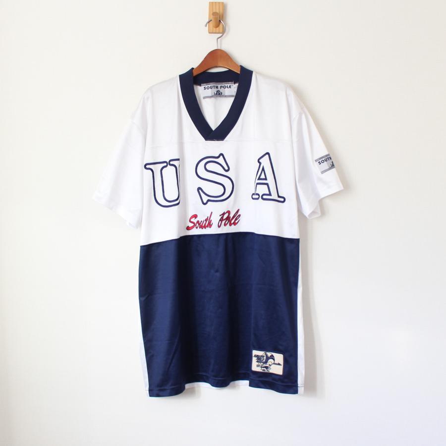 SOUTH POLE サウスポール フットボールシャツ テカリのある白×ネイビー M (w-0678)