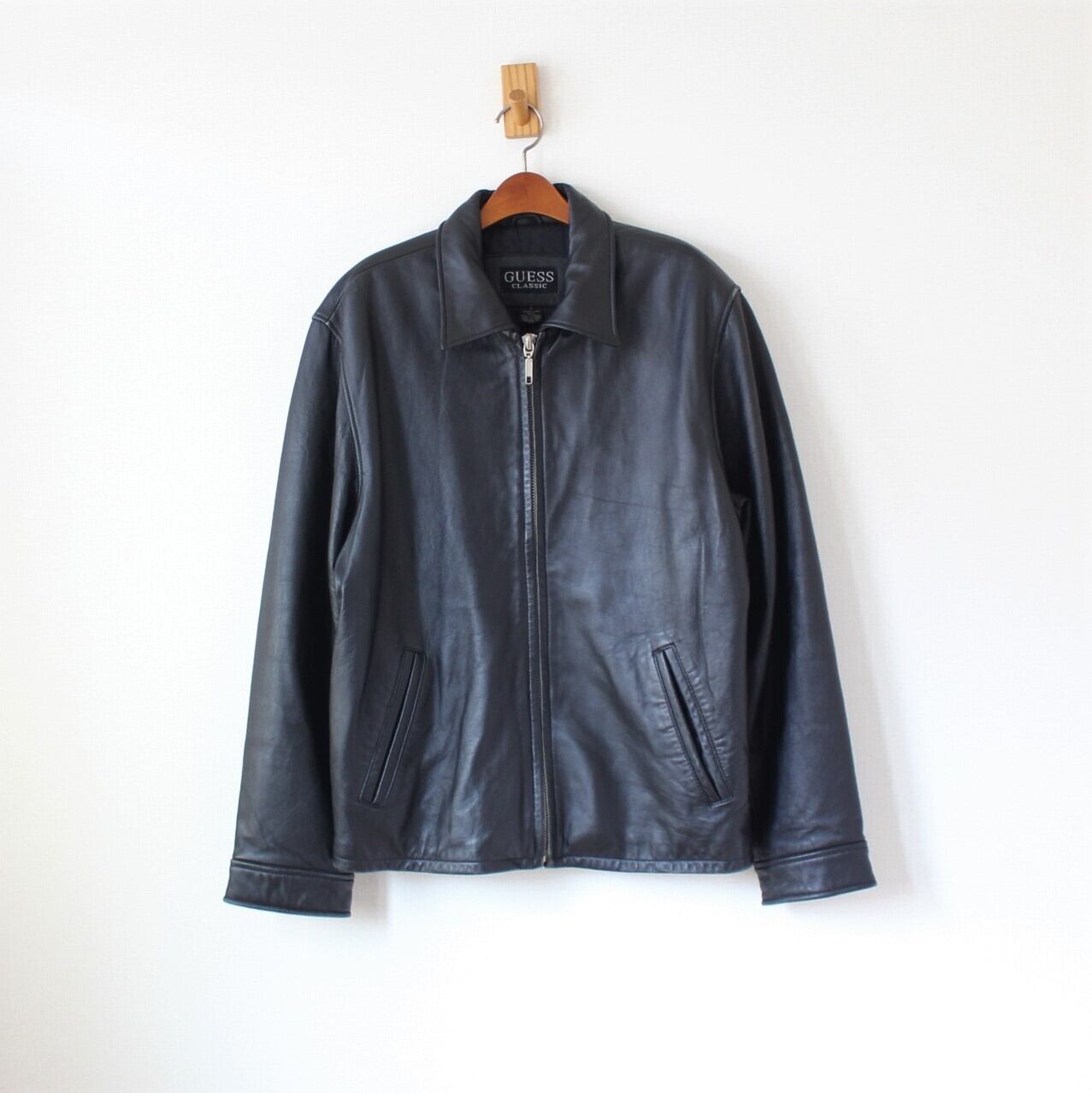 GUESS CLASSIC ゲス 90s ナッパラムレザー スポーツジャケット 中国製 黒 S 大きめ (w-1420719)