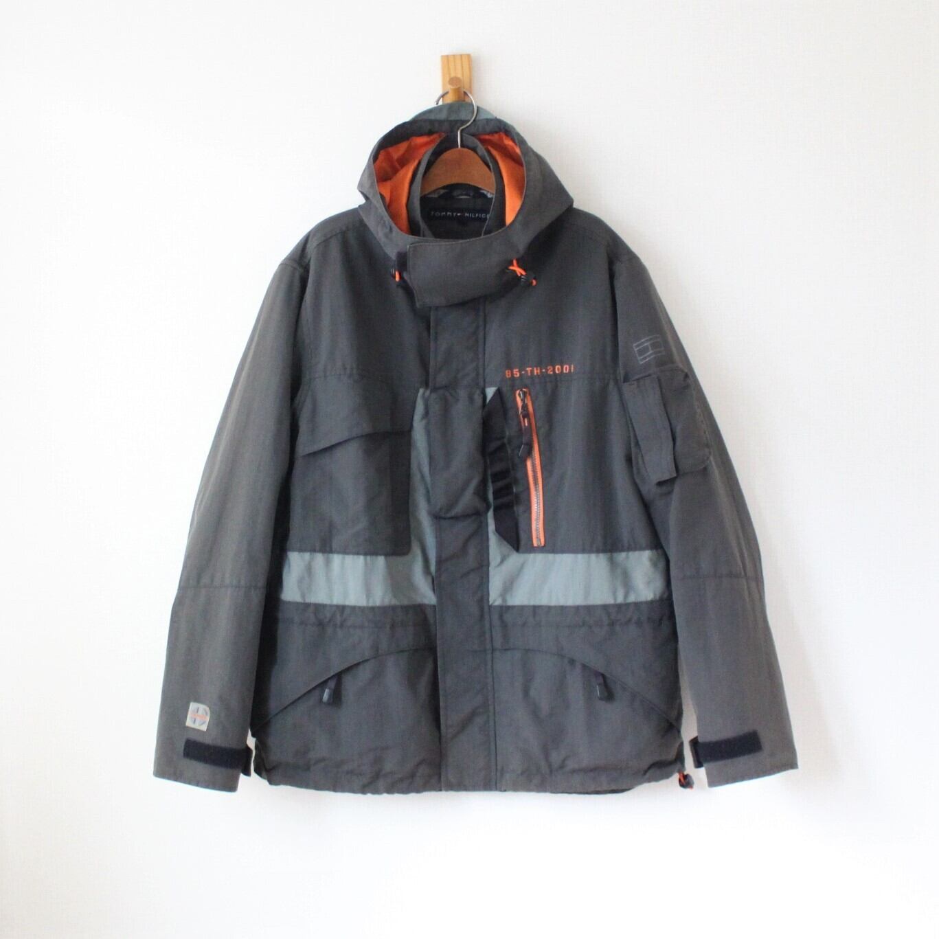 トミーヒルフィガー 00s ジャケット マルチポケット ririジップ仕様 チャコールグレー S 大きめ (w-2421028)